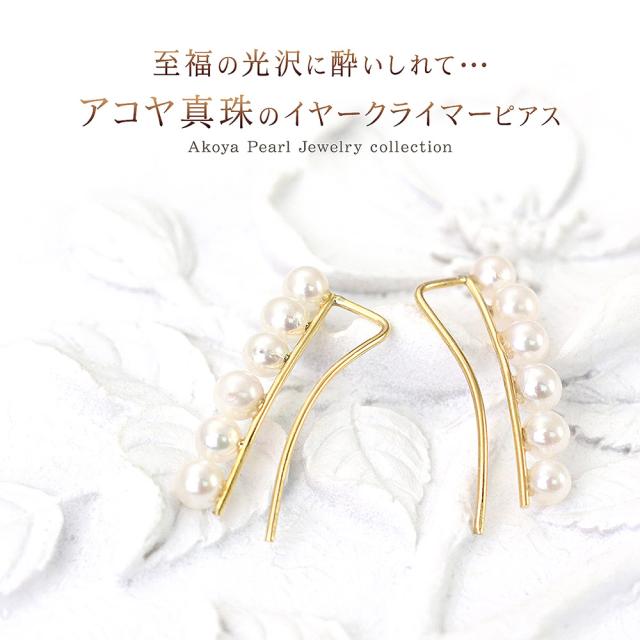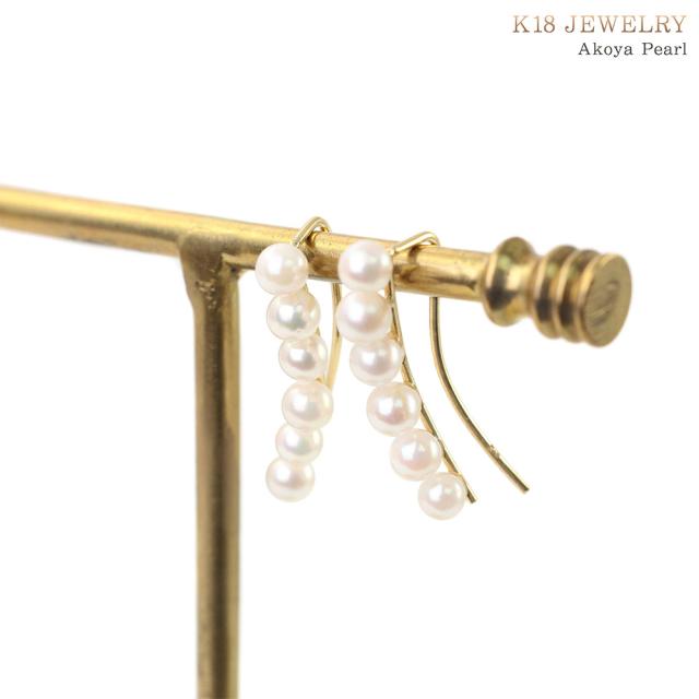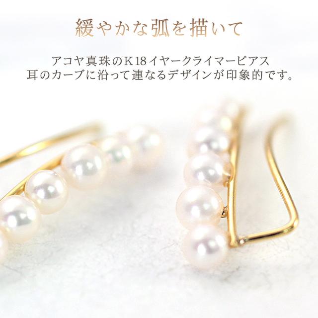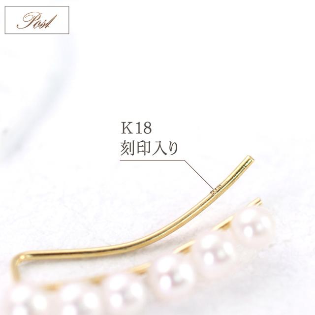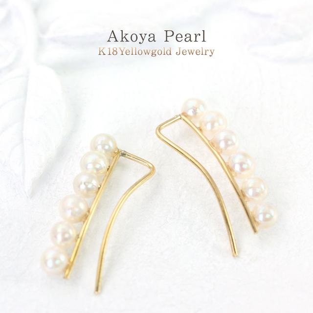 パール ピアス 18金 6連 6粒 両耳用 イヤークライマーピアス 真珠 アコヤ真珠 レディース あこや真珠 18k ラインピアス アクセサリー k18 結婚式 6月 パールピアス カーブ 耳たぶに沿う クリスマス プレゼント 記念日 誕生日 女性 卒業祝い 就職祝い