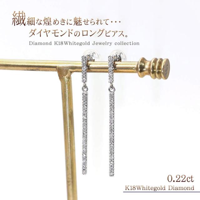 ロングピアス 18金 ダイヤモンド レディース k18 ホワイトゴールド ピアス ゆれる アクセサリー 長い ダイヤ 18k パーティー 豪華 ダイヤ ダイヤモンドピアス バー 棒 長方形 シンプル 母の日 ギフト 2026 記念日 誕生日 お祝い ギフト 贈り物 女性 彼女 妻 嫁 30代 40代
