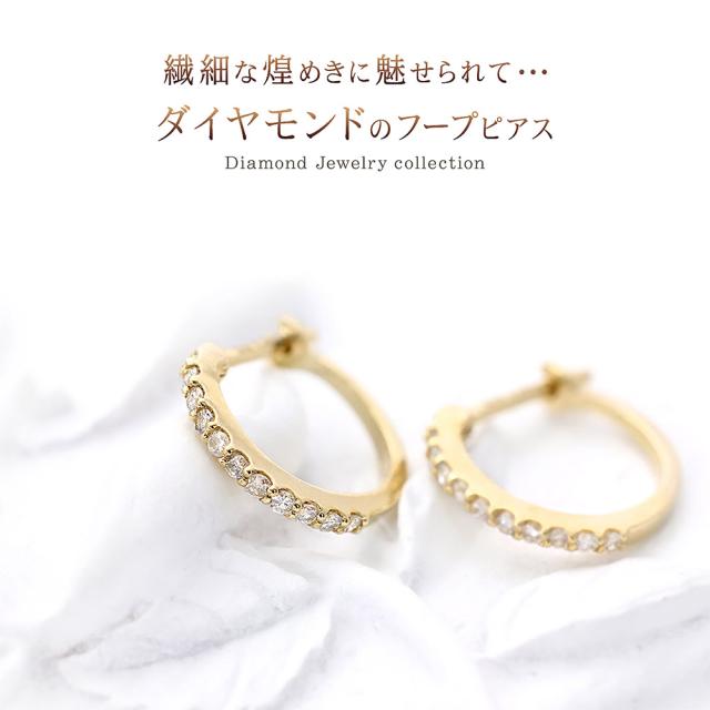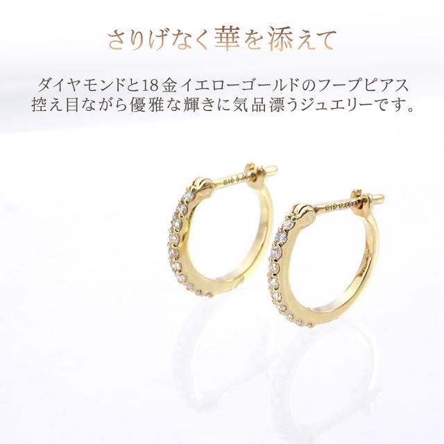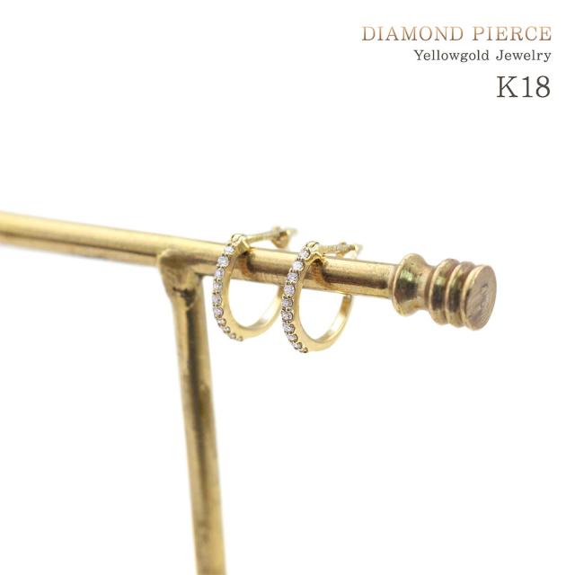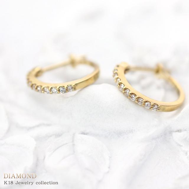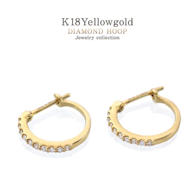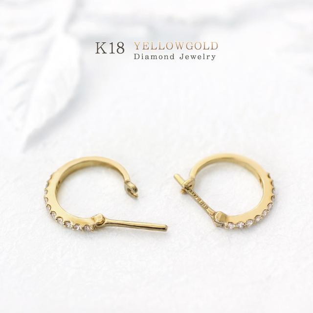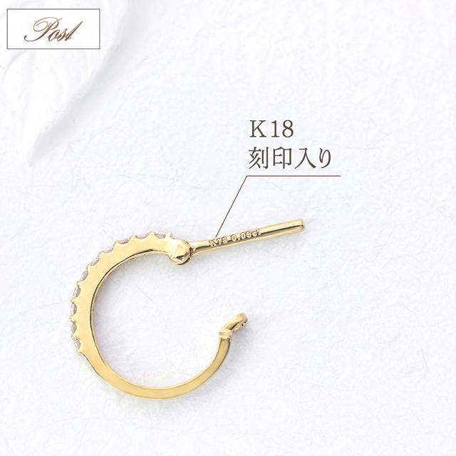 フープピアス 18金 レディース k18 ダイヤモンド 18k ゴールド ジュエリー フープ ハーフエタニティ ピアス リング 輪っか プレゼント ダイヤモンドピアス 母の日 ギフト 2026 記念日 誕生日 お祝い ギフト 贈り物 女性 彼女 妻 嫁