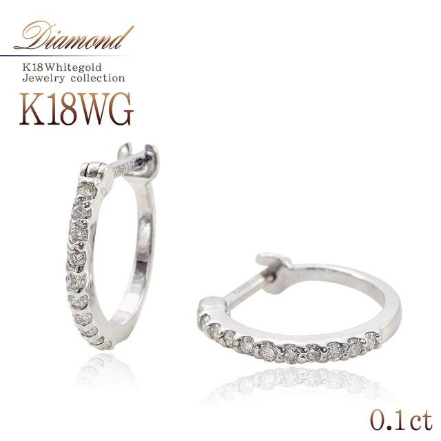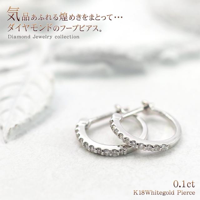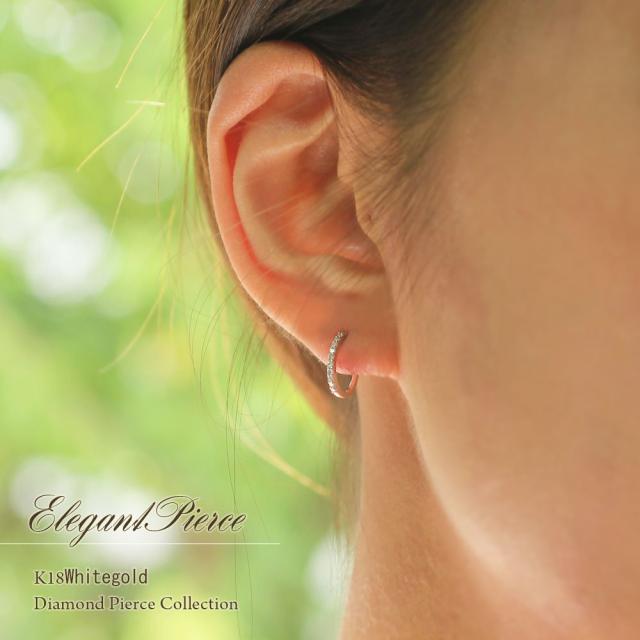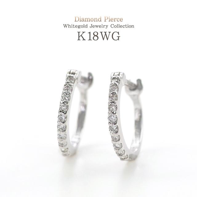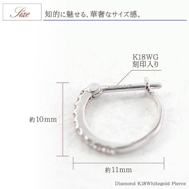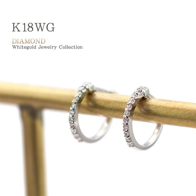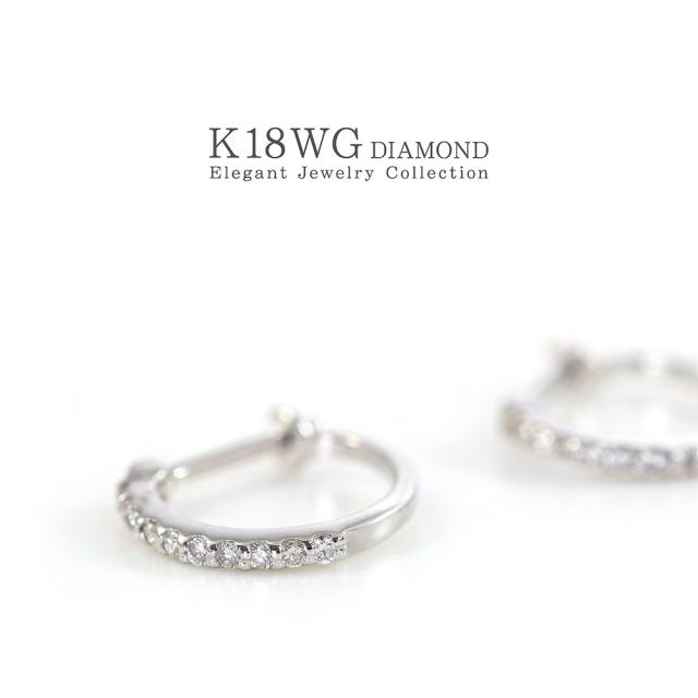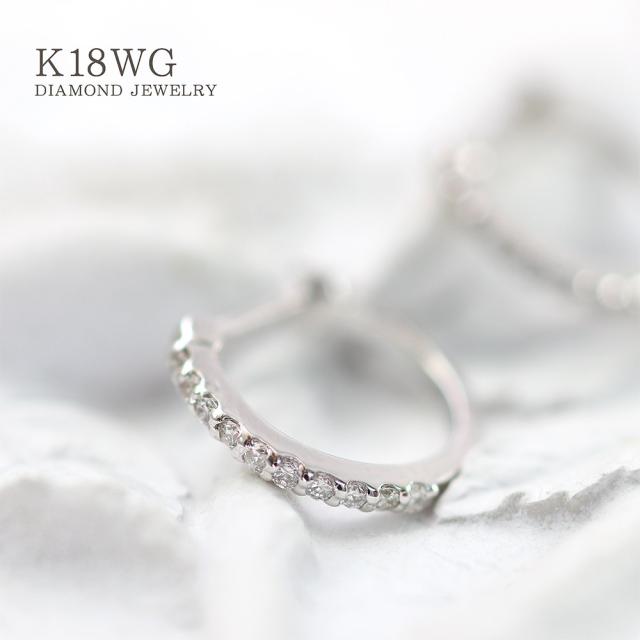 フープピアス 18金 ピアス レディース k18 ダイヤモンド フープ ホワイトゴールド 18k リング 輪っか ハーフエタニティ 重ねづけ おしゃれ 18金ピアス 細い 華奢 クリスマス プレゼント 記念日 誕生日 ギフト 贈り物 女性 彼女 妻 40代