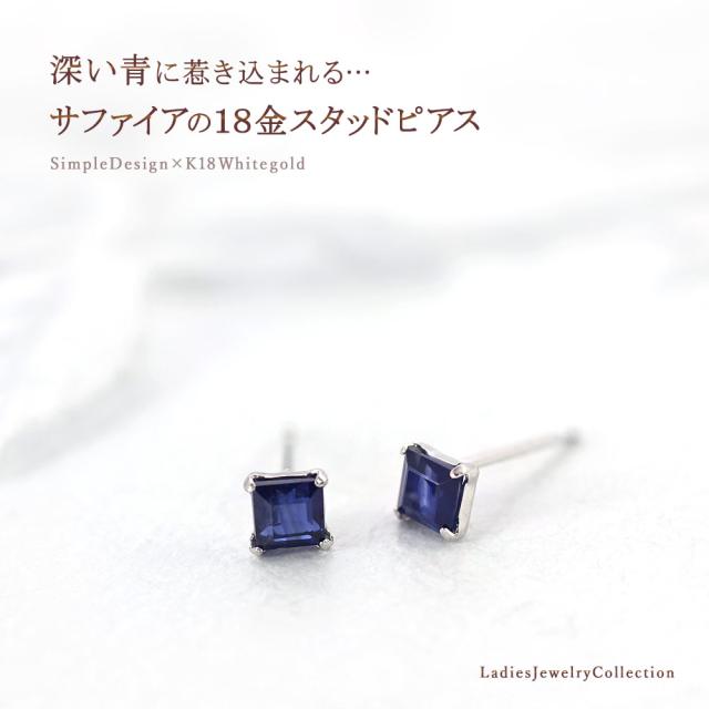 サファイア 18金 ピアス 18k レディース K18 ホワイトゴールド 一粒 (両耳) スクエア 四角 シンプル ジュエリー 9月 誕生石 青 ブルー 18金ピアス 小ぶり 小さい 小ぶりピアス 四角形 かわいい 記念日 誕生日 お祝い ギフト 贈り物 女性 彼女 妻 嫁 娘 母の日 ギフト 2026