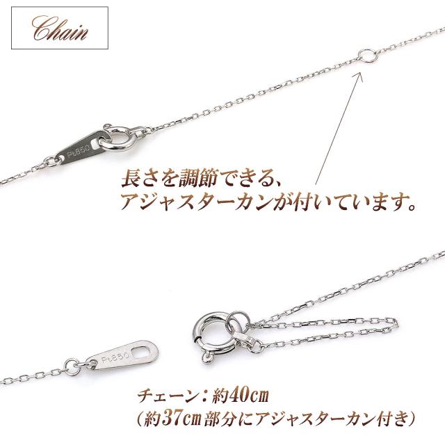 | サイズ | ・Ptペンダントトップ:約12mm×(最大幅)約1.6mm ・チェーン:約40cm(約37cm部分にアジャスターカン付き) |