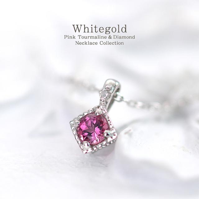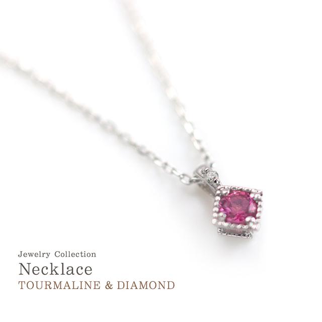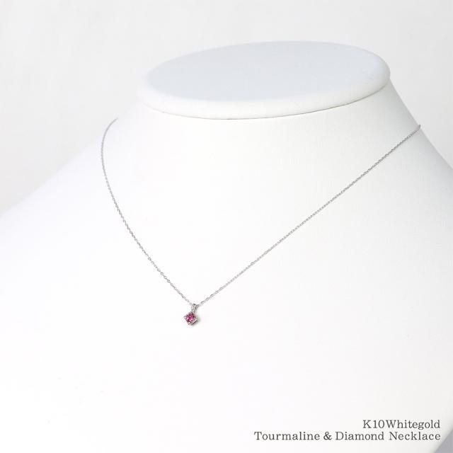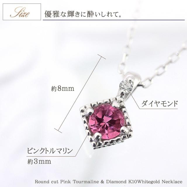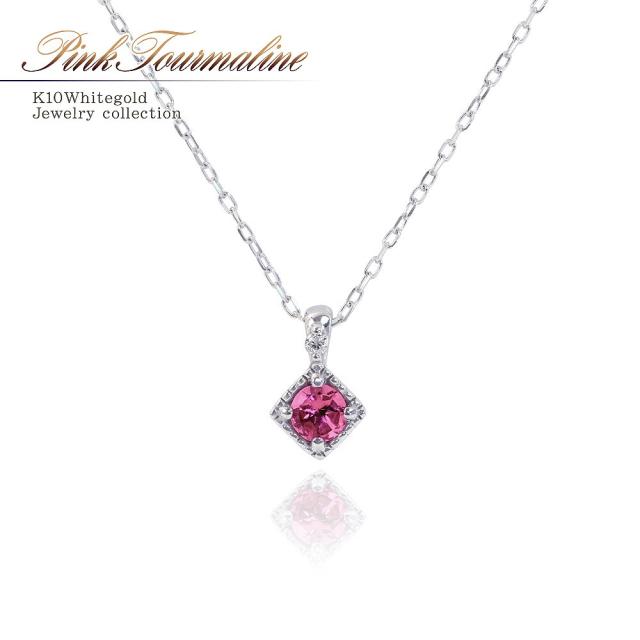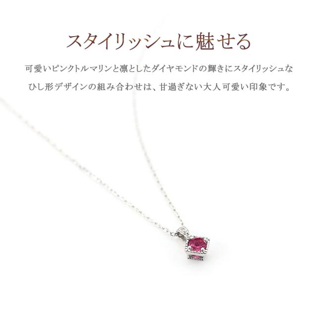 ネックレス レディース ダイヤモンド ピンクトルマリン K10 プレゼント ホワイトゴールド 可愛い ピンク ひし形 10月 4月 誕生石 天然石 宝石 菱型 ピンク トルマリン 10金 K10 記念日 誕生日 ギフト 贈り物 女性 彼女 妻 20代 30代 40代 本物 おしゃれ ホワイトデー お返し