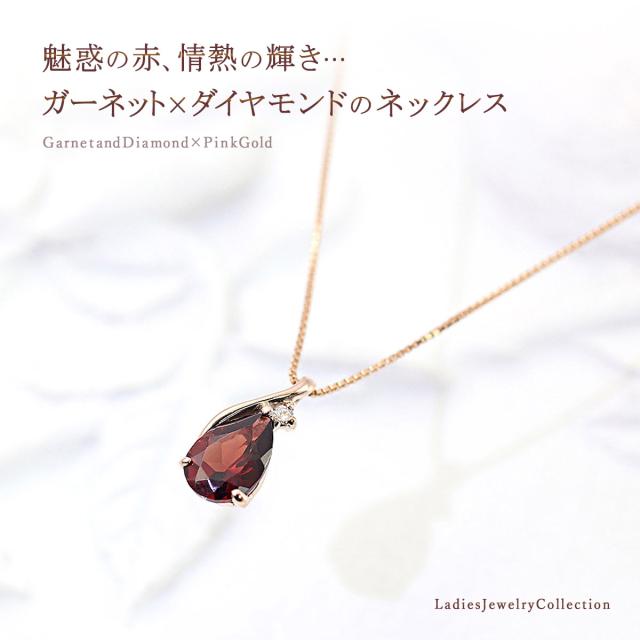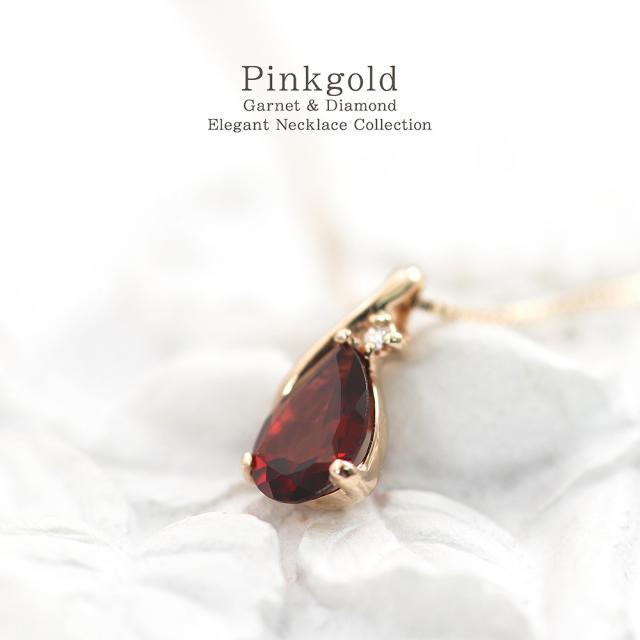 ガーネット ネックレス レディース ピンクゴールド かわいい ダイヤモンド ガーネットネックレス プレゼント ジュエリー 赤 レッド 雫型 涙形 大人 ペンダント 4月 1月誕生石 おしゃれ 誕生日 贈り物 女性 彼女 妻 嫁 本物 30代 40代 50代 60代 還暦祝い ホワイトデー お返し