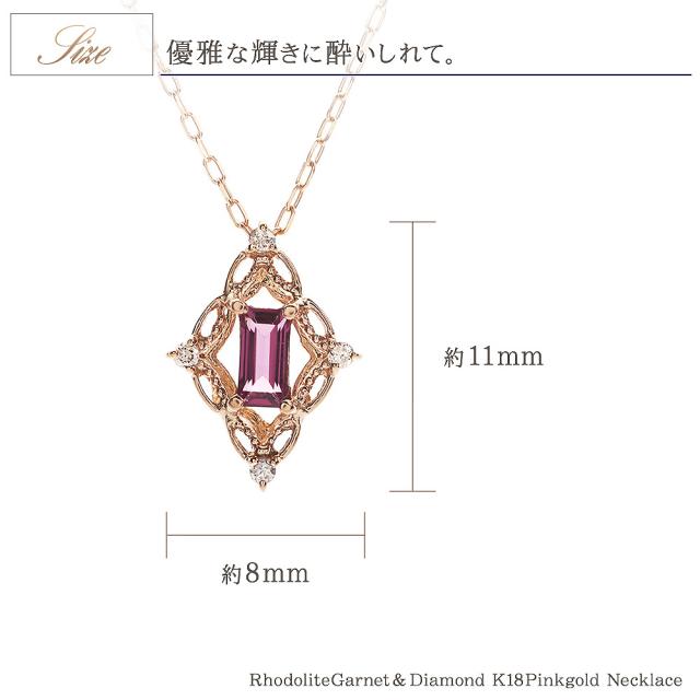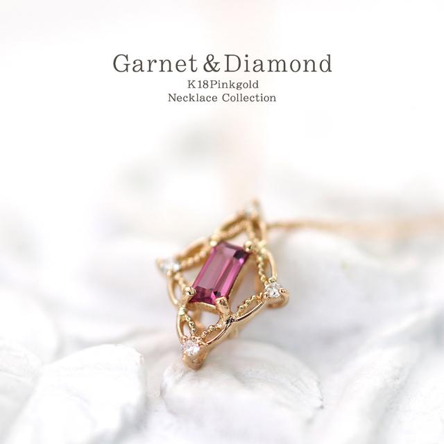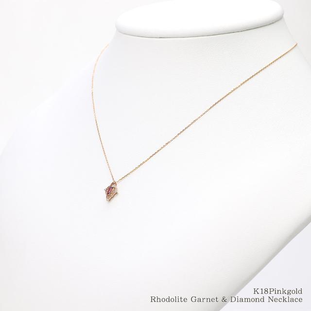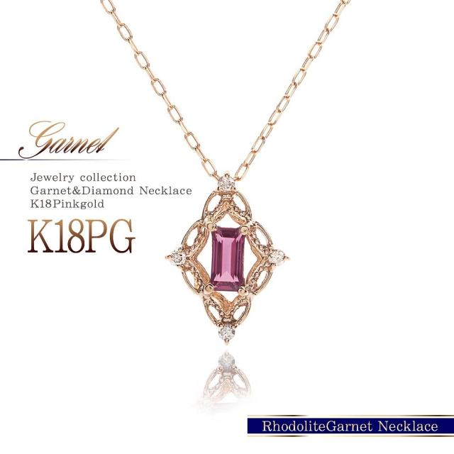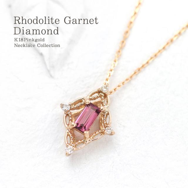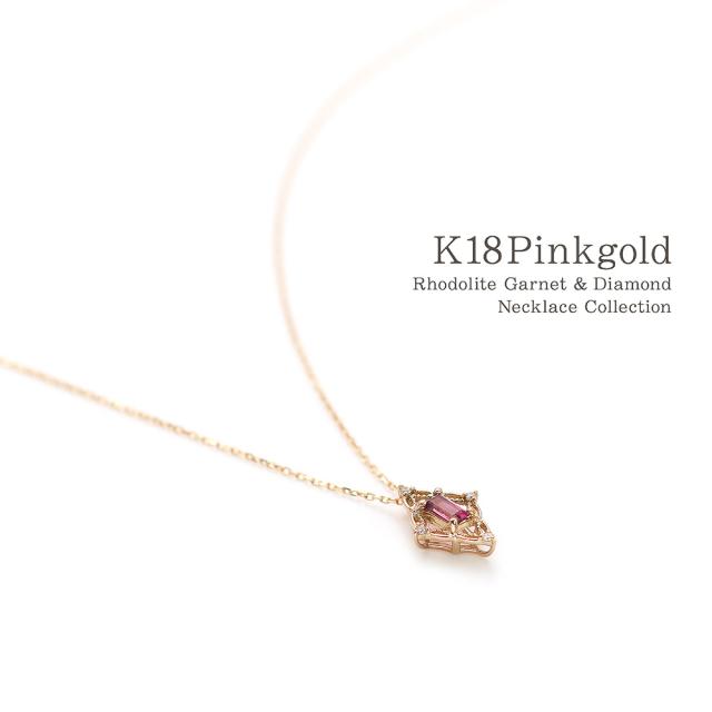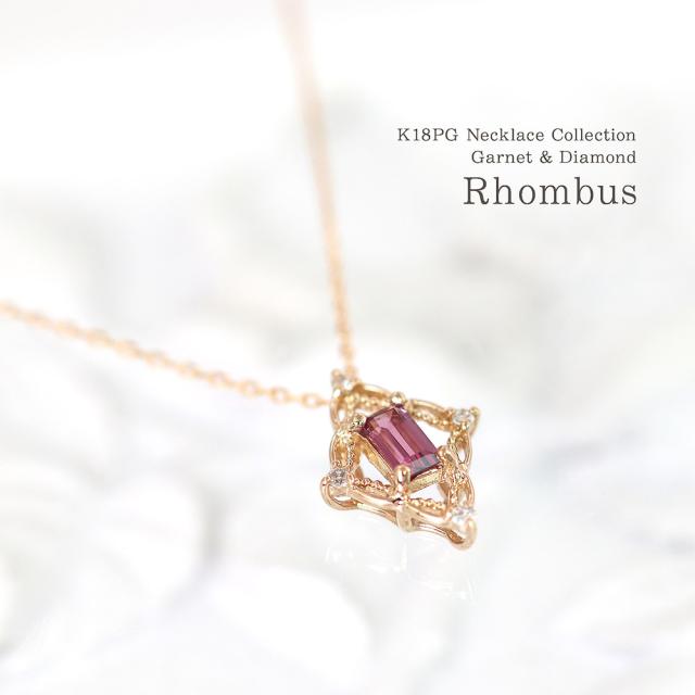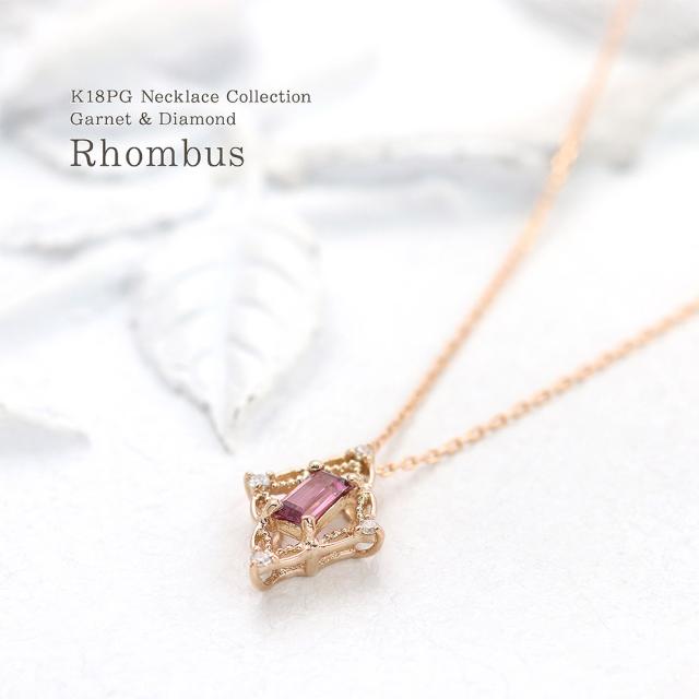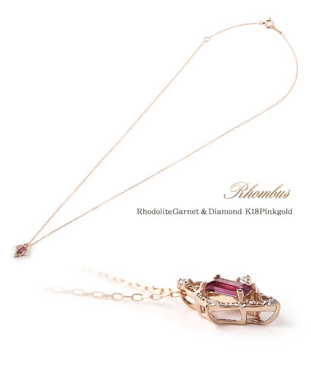 18金ネックレス ピンクゴールド ダイヤモンド k18 ネックレス 18k 18金 ロードライトガーネット ジュエリー ピンク ひし形 菱型 可愛い ガーネット 1月誕生石 大きめ 記念日 誕生日 贈り物 女性 彼女 妻 嫁 娘 おしゃれ 宝石 30代 40代 50代 本物 ホワイトデー お返し