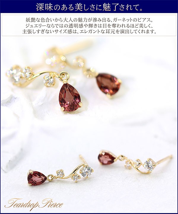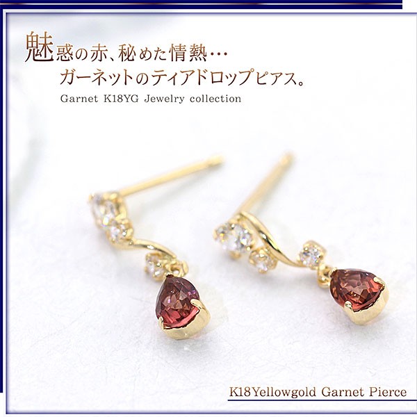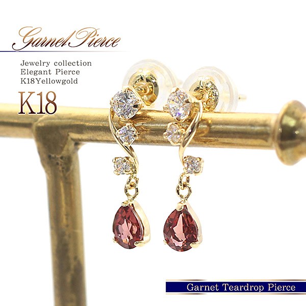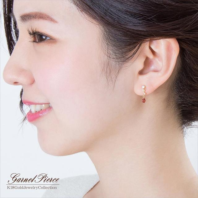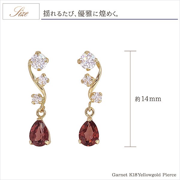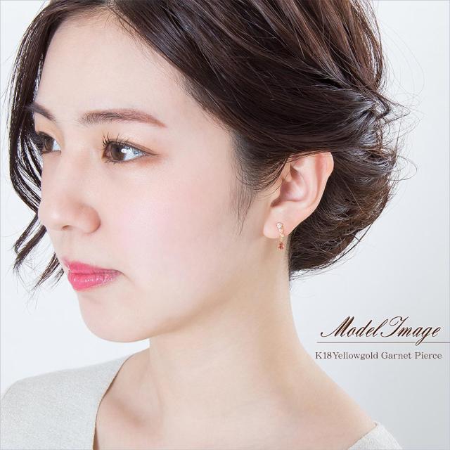 ガーネット ピアス 18金 レディース 18k ゆれる K18YG シンプル 揺れる ジュエリー K18 ゴールド 1月 誕生石 赤 レッド 可愛い お洒落 ガーネットピアス ホワイトデー お返し 記念日 誕生日 ギフト 贈り物 女性 彼女 妻 嫁 宝石