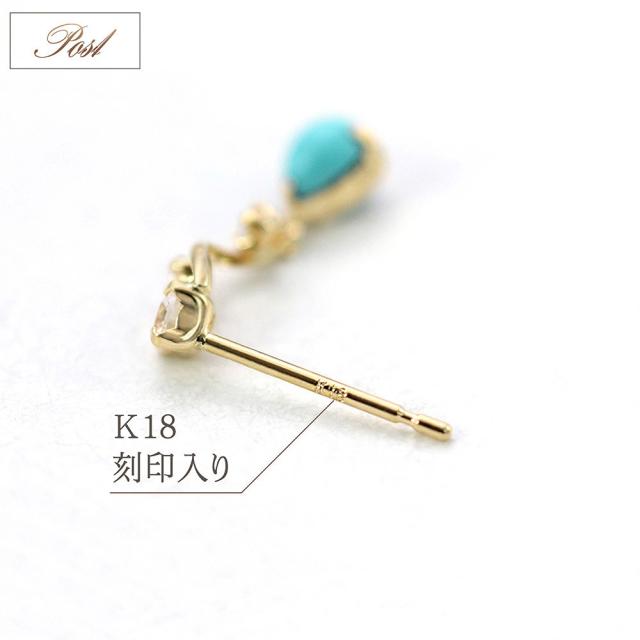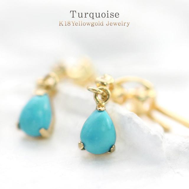 ターコイズ ピアス レディース 18金 トルコ石 k18 18k 12月 誕生石 イエローゴールド 水色 ブルー 雫形 ゆれる 可愛い 宝石 18金ピアス ターコイズピアス 上品 30代 40代 母の日 ギフト 2026 記念日 誕生日 贈り物 女性 彼女 妻 天然石