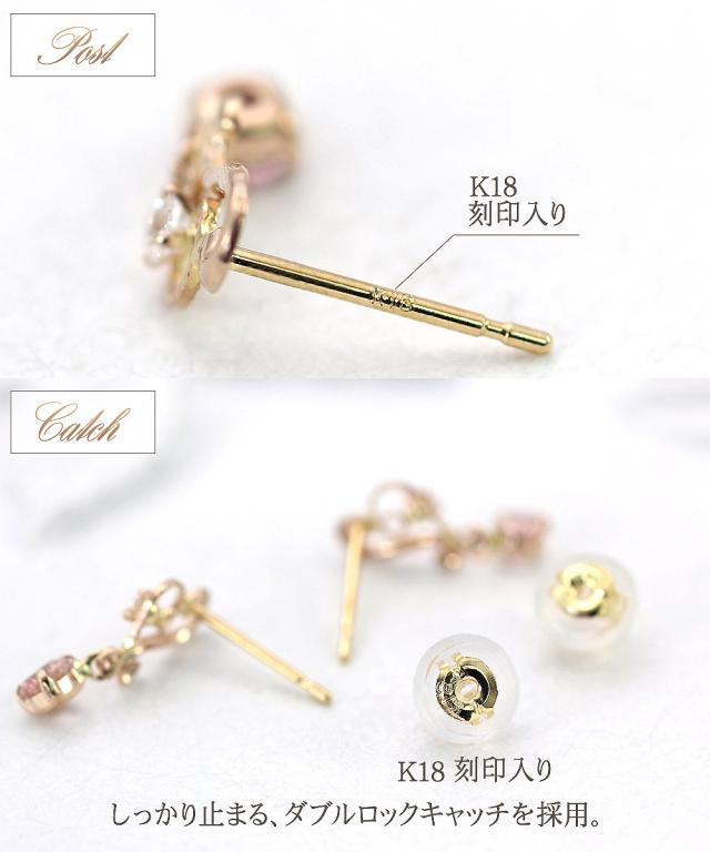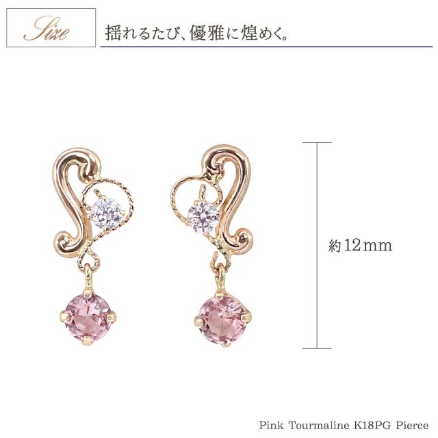 | 地金・素材 | ・ピンクトルマリン(ナイジェリア産) ラウンドカット ・キュービックジルコニア ・地金:K18PG(18金ピンクゴールド) ・ダブルロック キャッチ ※刻印等は異なる場合がございます。 |
