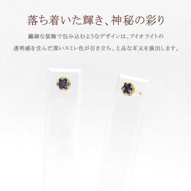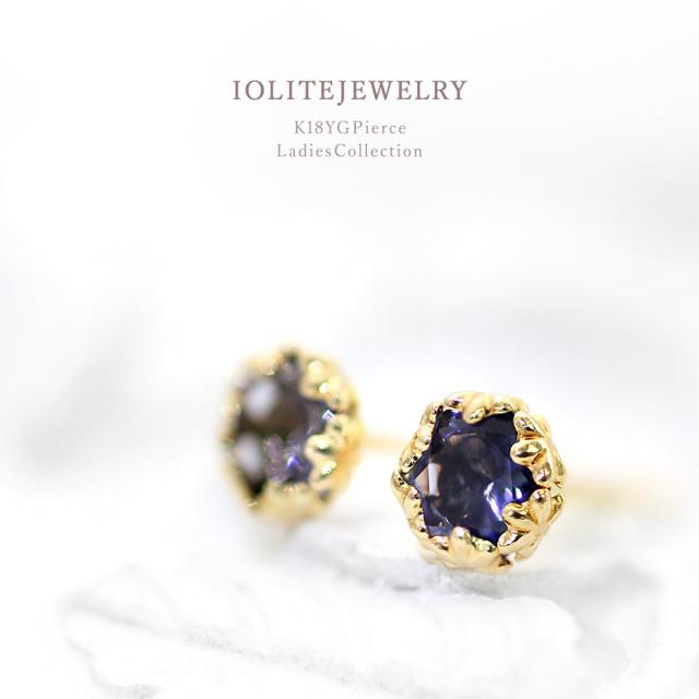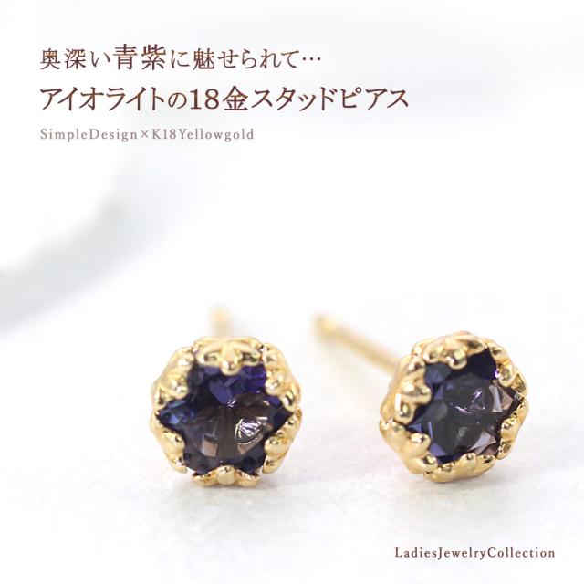 ピアス レディース 18金 アイオライト ゴールド 18金ピアス k18 18k ジュエリー 小ぶり アクセサリー 可愛い プレゼント 紫 青紫 セカンドピアス 一粒 両耳用 小さい 小さめ 宝石 天然石 記念日 誕生日 贈り物 女性 彼女 妻 花 星 3月 誕生石 本物 母の日 ギフト 2026