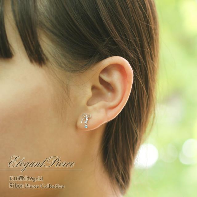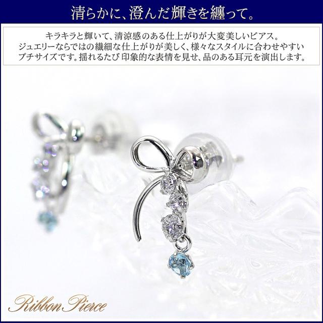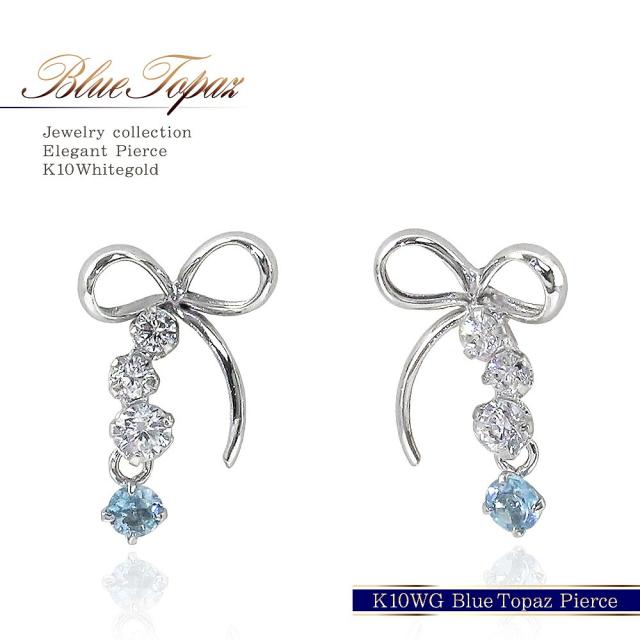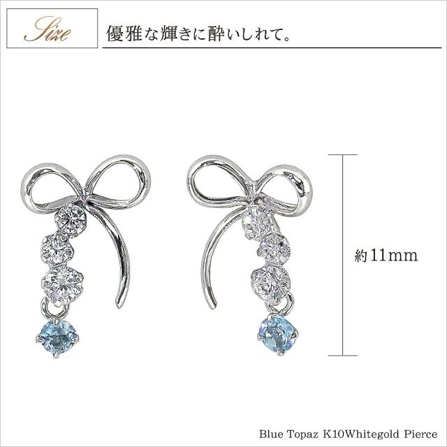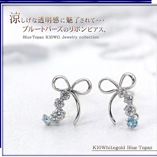 ピアス レディース リボン 10金 ブルートパーズ ホワイトゴールド ジュエリー りぼん アクセサリー ブルー 可愛い 水色 11月 誕生石 宝石 K10 10K リボン モチーフ 20代 30代 母の日 ギフト 2026 誕生日 贈り物 女性 彼女 嫁 娘