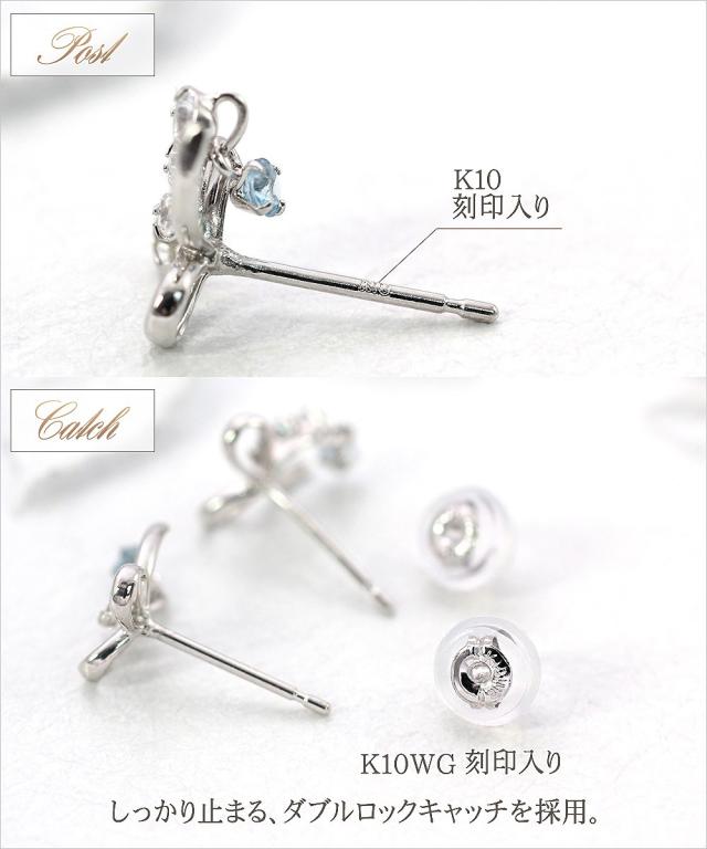 | 地金・素材 | ・ブルートパーズ(ブラジル産) ・キュービックジルコニア ・地金:K10WG(10金ホワイトゴールド) ・ダブルロック キャッチ |