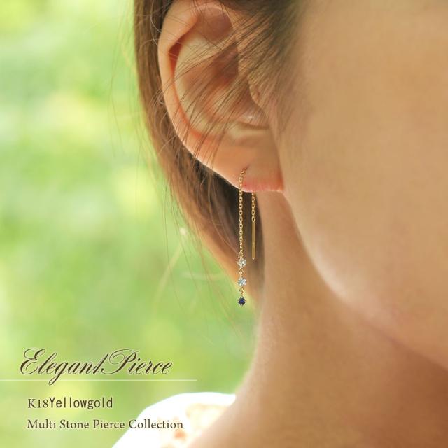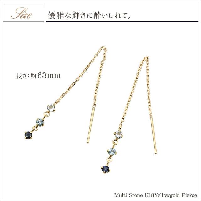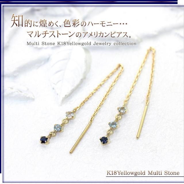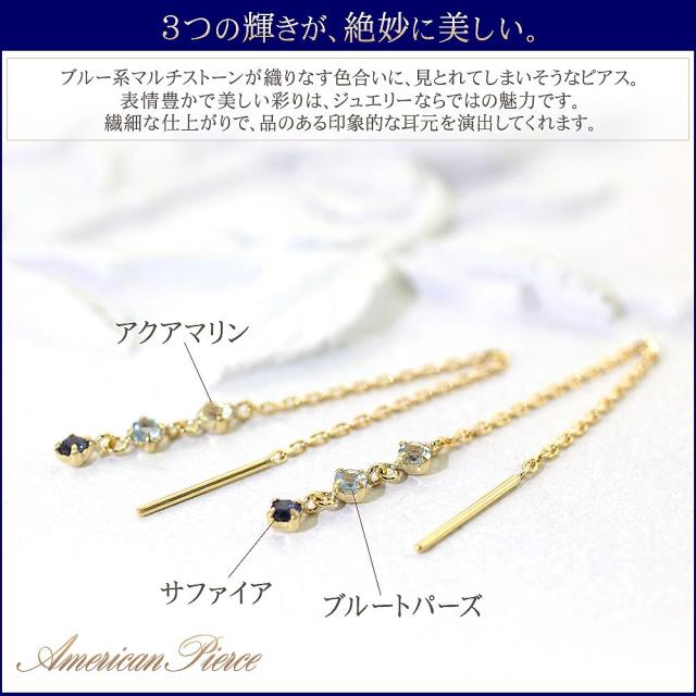 18金アメリカンピアス 18金 ピアス レディース アクアマリン ブルートパーズ サファイア k18 ゴールド ジュエリー ゆれる 18k アメリカンピアス かわいい 青 ブルー 宝石 ロング チェーンピアス プレゼント 記念日 誕生日 ギフト 贈り物 女性 彼女 3月 11月 9月
