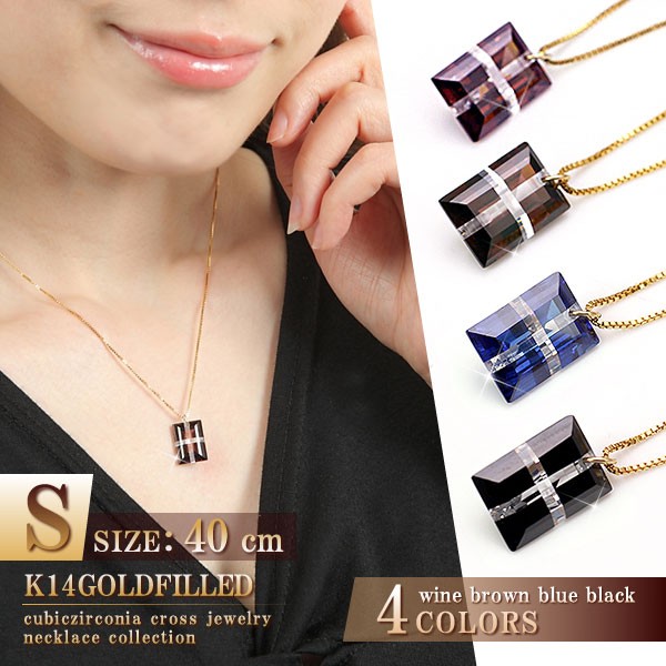 ネックレス レディース かっこいい Sサイズ 40cm 14金ゴールドフィルド 十字架 個性的 クロス ジュエリー アクセサリー ゴールド 四角 ブラウン ワイン ブルー ブラック 個性派 母の日 ギフト 2026 誕生日 贈り物 女性 彼女 嫁 娘 四角い