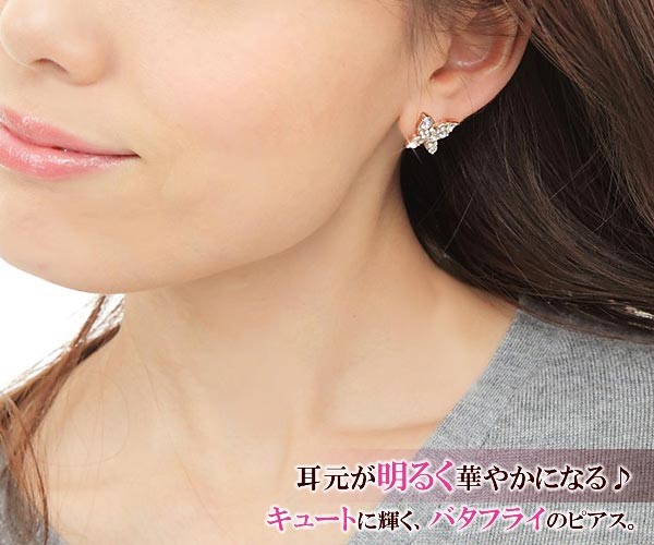 蝶 ピアス バタフライ レディース かわいい チョウ 可愛い ピンクゴールド チタン ゴージャス クリスタル ちょうちょ プレゼント 蝶々 大ぶり 大きめ キラキラ パーティー お呼ばれ 蝶のピアス プレゼント 記念日 誕生日 お祝い ギフト 贈り物 女性 彼女 妻 嫁 奥さん 娘 友達