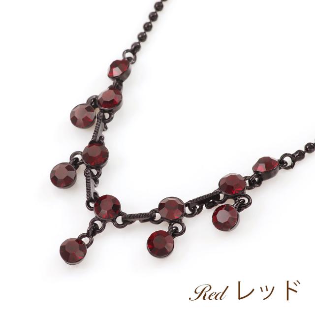 | コメント | ブラックカラーが大人っぽいネックレスです。 連なるストーンが揺れるたびキラキラと輝き華やかな胸元を演出します。 お出かけやお呼ばれ、パーティーなどにも映えるブラックアクセサリーです! ストーンカラーは『レッド』と『ブラック』からお選びいただけます。 |