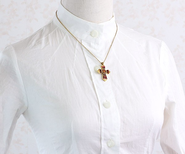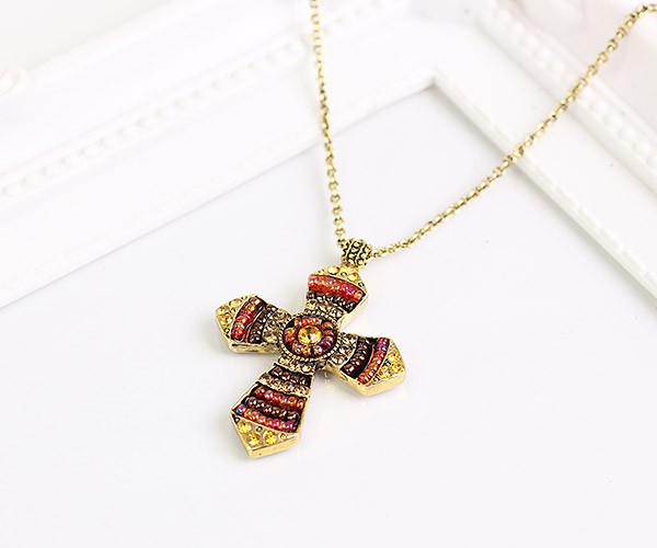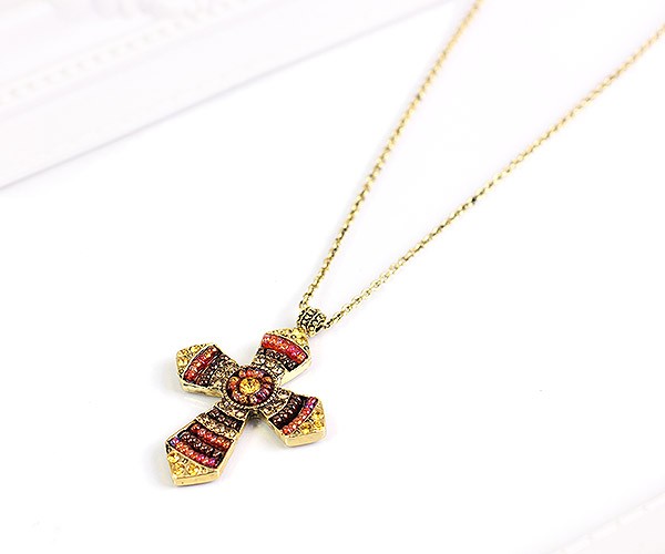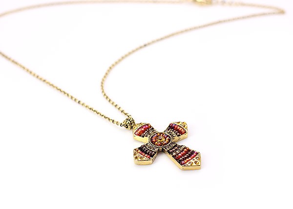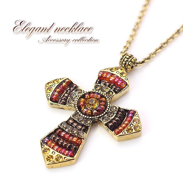 ネックレス レディース クロス エスニック ゴールド ビーズ 十字架 ペンダント アクセサリー ロザリオ プレゼント
