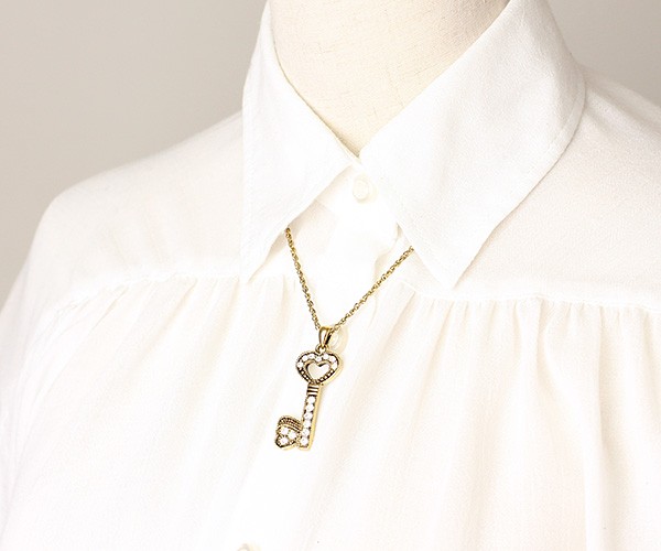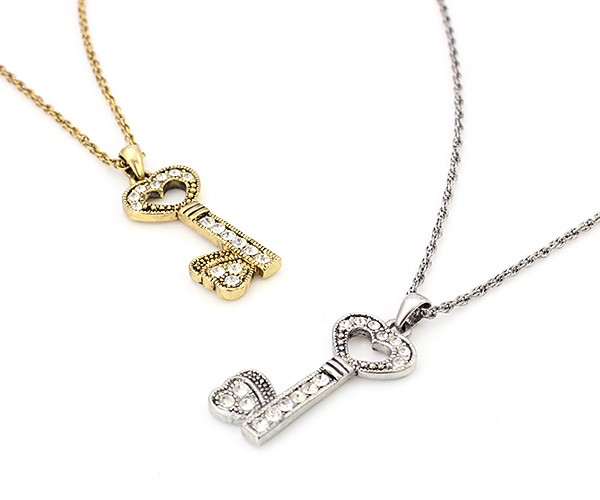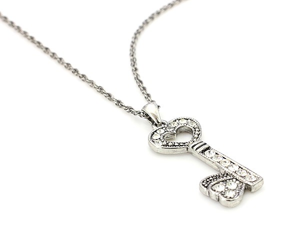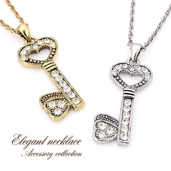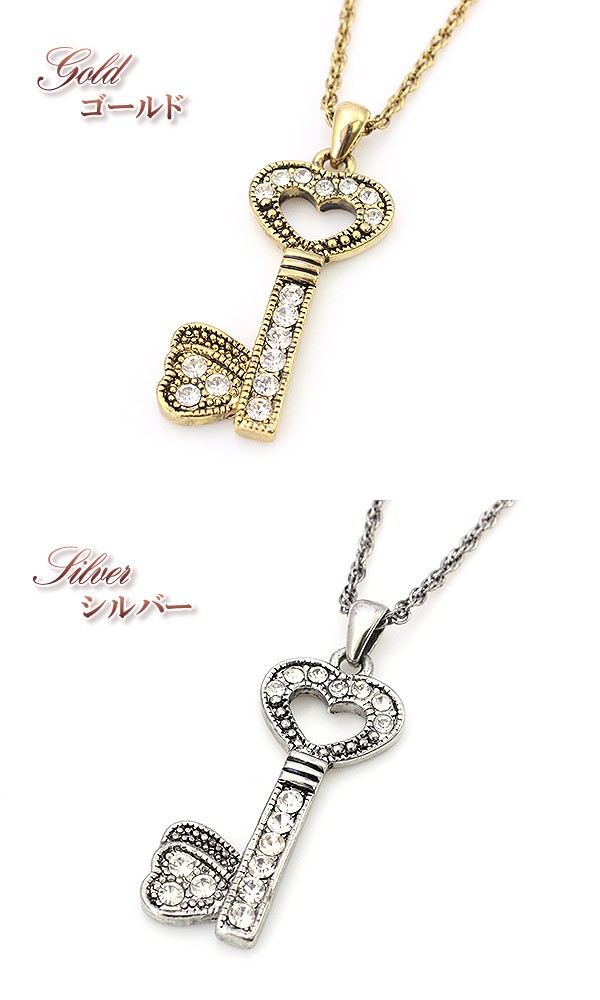 ネックレス レディース 鍵 ハート キー きらきら アクセサリー ゴールド シルバー アンティーク調 可愛い キュート 誕生日 プレゼント