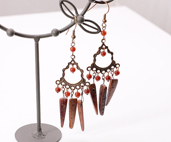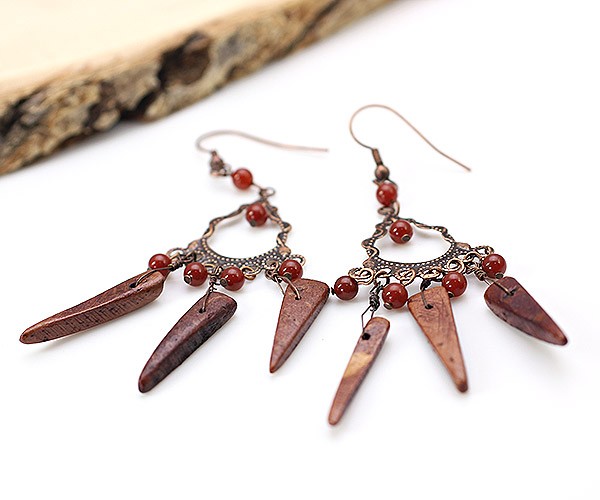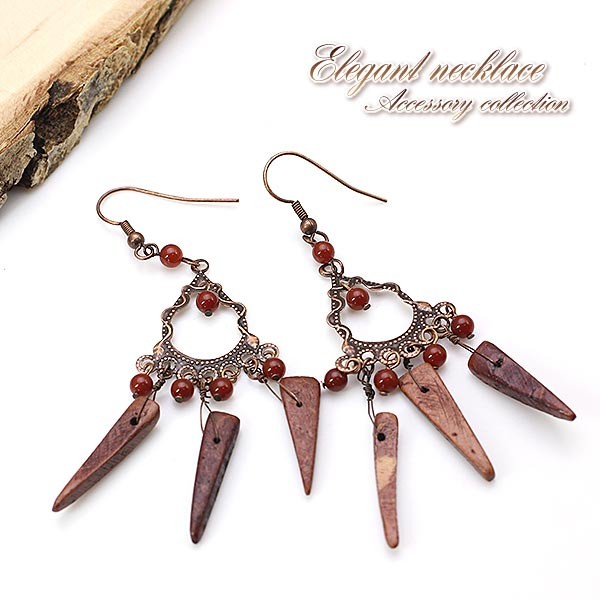 ピアス 揺れる レディース ゆれるピアス エスニック じゃらじゃら ウッド めのう アンティーク調 フックピアス アクセサリー 女性 誕生日