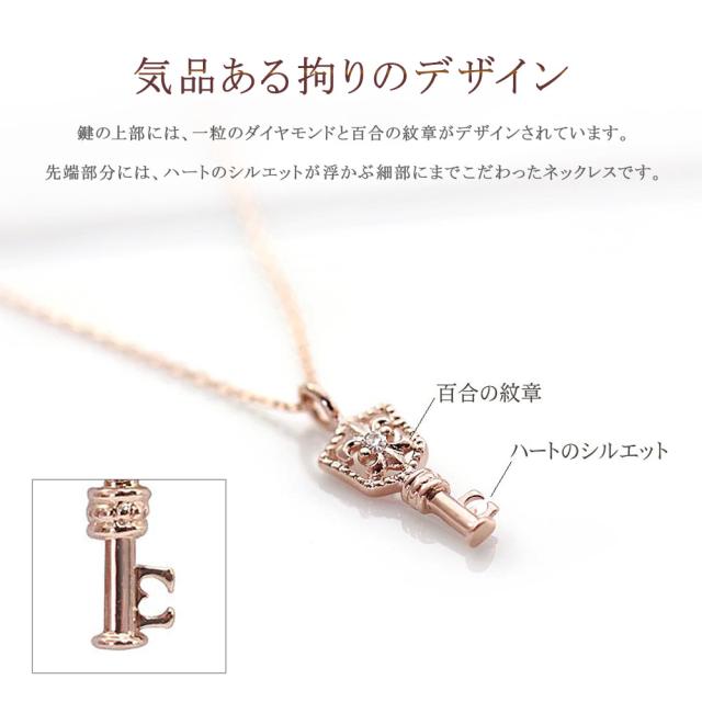ネックレス レディース ダイヤ ブランド キーネックレス ダイヤモンド 鍵 モチーフ 心葉 キー ペンダント ジュエリー ダイヤモンドネックレス プレゼント 小ぶり カギ 10金 母の日 ギフト 2026 記念日 誕生日 4月 ギフト 贈り物 女性 彼女 嫁