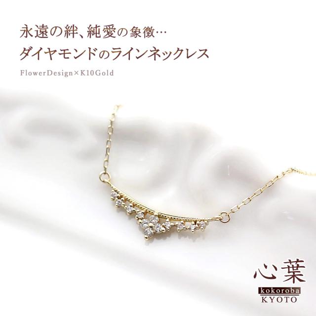 ダイヤモンド ラインネックレス フラワー お花 可愛い レディース ネックレス ブランド ジュエリー ゴールド プレゼント 可愛い 小ぶり 横ライン 会社 小さめ おしゃれ 10金 K10 宝石 4月誕生石 誕生日 贈り物 女性 彼女 妻 嫁 娘 本物 かわいい 10K クリスマス プレゼント