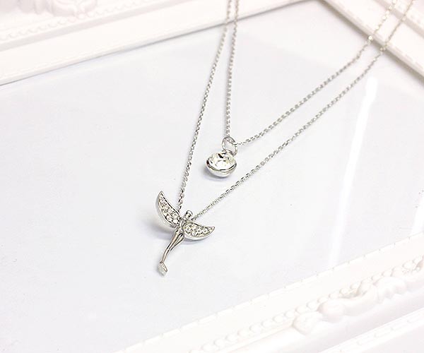 二連ネックレス レディース シルバー ネックレス フェアリー 一粒 妖精 2連 上品 重ね付け 二連 高見え キラキラ アクセサリー 個性的 よう精 ようせい 個性派 婦人 首飾り プレゼント 母の日 ギフト 2026 誕生日 贈り物 女性 彼女 妻 嫁 母