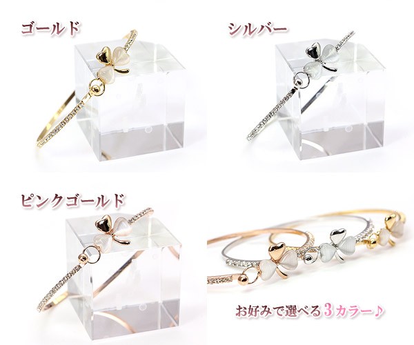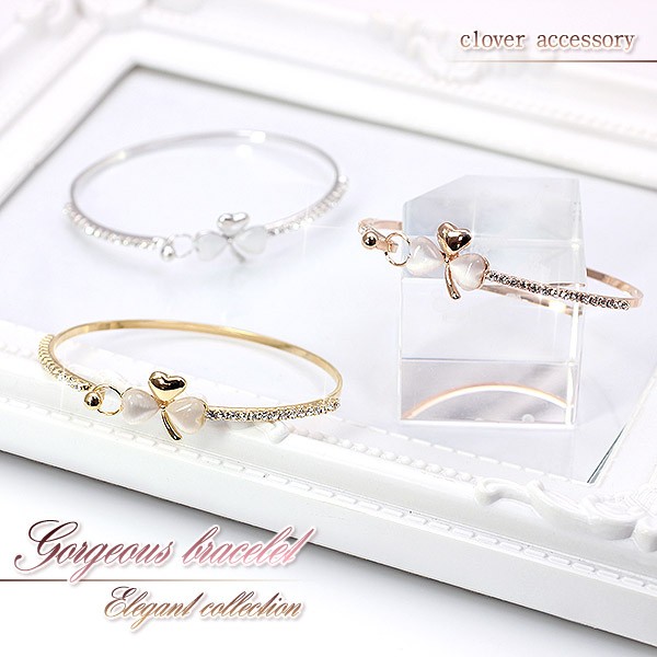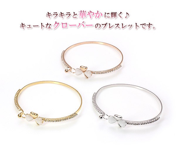 ブレスレット クローバー レディース アクセサリー バングル キラキラ 三つ葉 ゴールド シルバー ピンクゴールド みつば 可愛い おしゃれ 腕輪 プレゼント 20代 30代 40代 母の日 ギフト 2026 記念日 誕生日 ギフト 贈り物 女性 彼女 妻