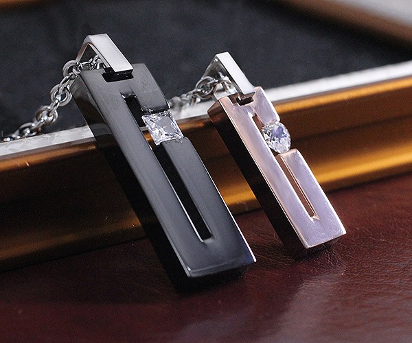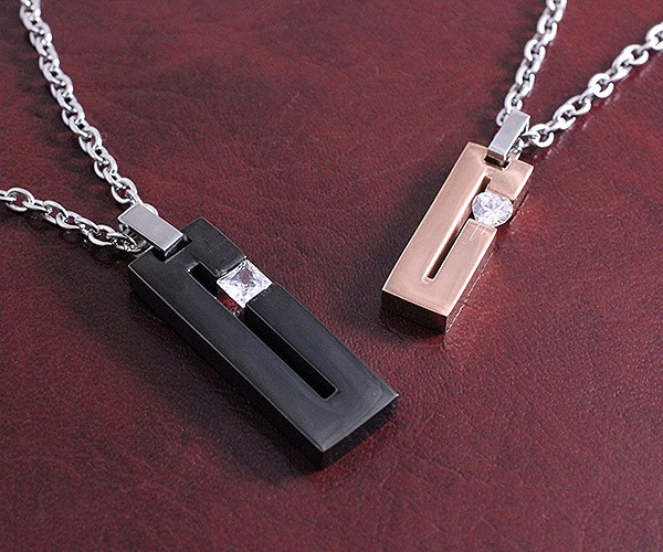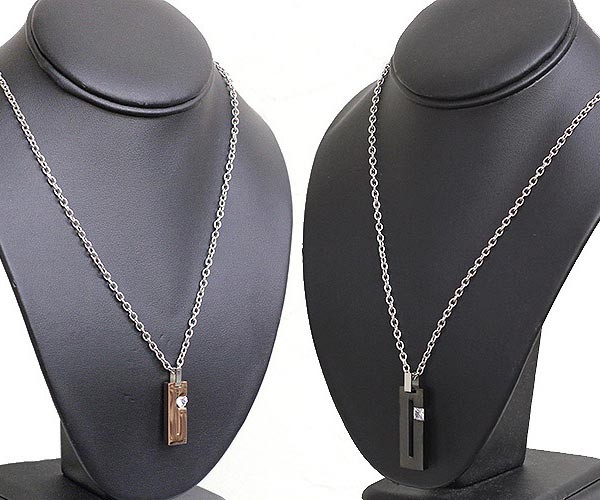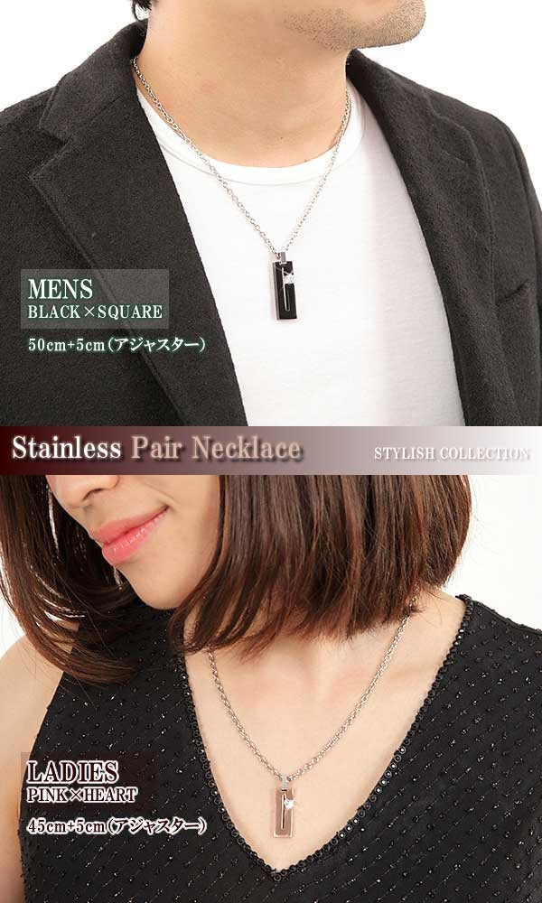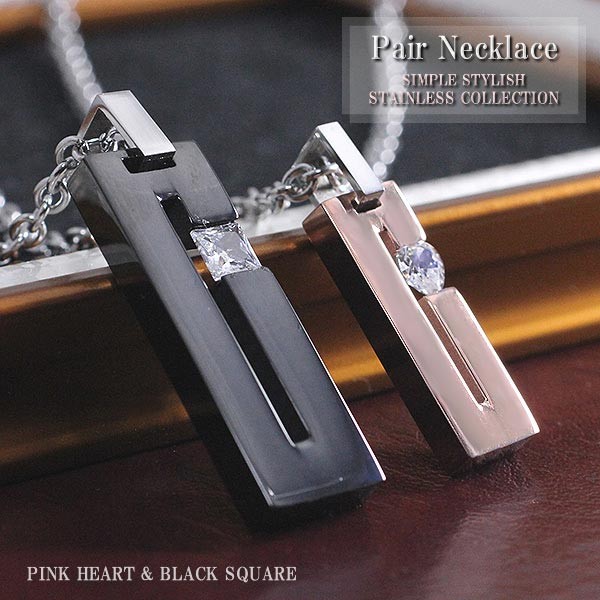 ピンクゴールドとブラックのステンレスネックレスがセットになったペアアクセサリーです。