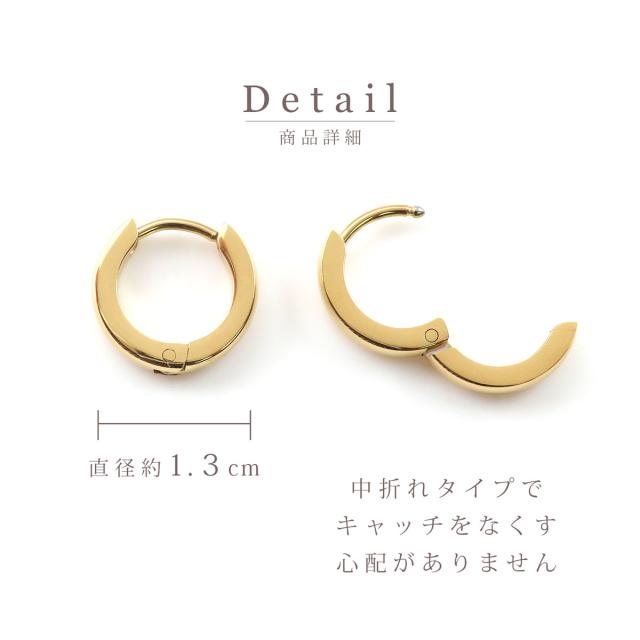 お肌にやさしい♪ステンレスのフープピアス☆ 中折れ式なのでワンタッチで装着可能です。 シンプルで、どんなコーデにも合わせやすく、金属アレルギー対応なので、安心してご使用いただけます。 ※ステンレス素材は一般的に、金属アレルギー対応とされていますが、稀にお肌に合わない場合もございます。 ご使用前に肌の柔らかい部分にあててみたりパッチテストをおすすめします。 |