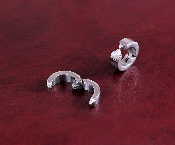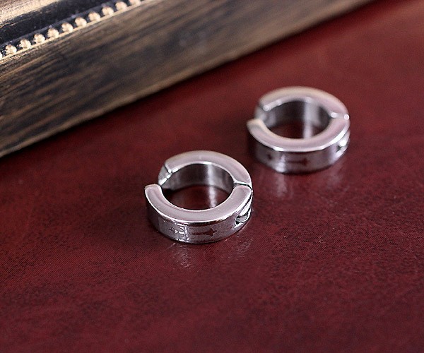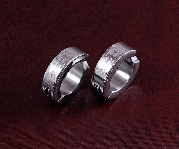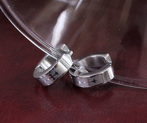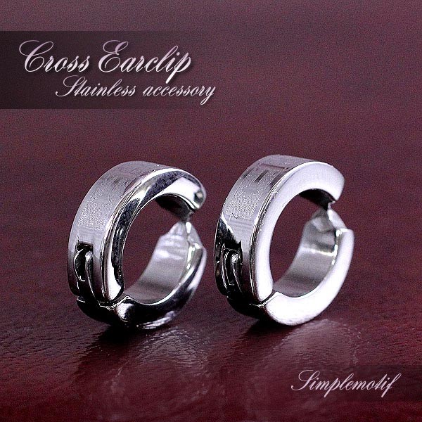 少し厚みのある輪っかに、クロスモチーフ(十字架モチーフ)がかっこいいデザインのステンレスアクセサリー…