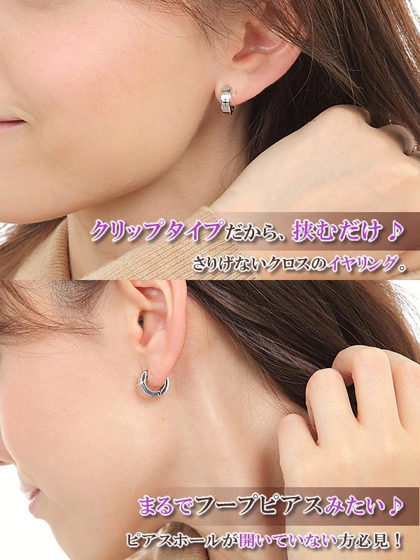 フープイヤリング 十字架 クロス シルバー アクセサリー ステンレス 金属アレルギー イヤリング かっこいい プレゼント シンプル アクセサリー ピアスに見える イヤーカフ レディース メンズ 母の日 ギフト 2026 誕生日 贈り物 女性 彼女 男性 イヤカフ