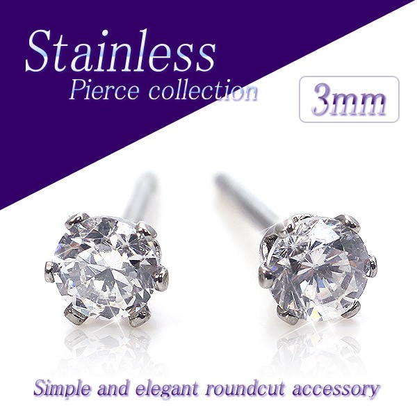 金属アレルギー ピアス レディース 一粒 (両耳用) シンプル ステンレス アクセサリー 3mm ジルコニア ステンレスピアス 金属アレルギー対応 小ぶり 小さい 小さめ シルバー メール便送料無料 プレゼント クリスマス プレゼント 誕生日 ギフト 贈り物 女性 彼女 妻 嫁 娘 友達