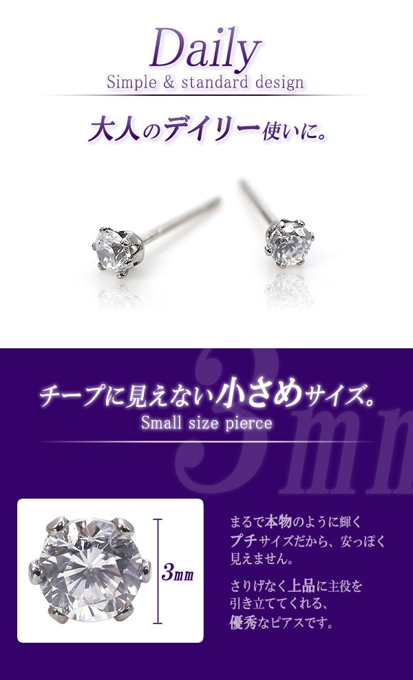直径3mmの上質のジルコニアを使用したシンプルなピアスです。