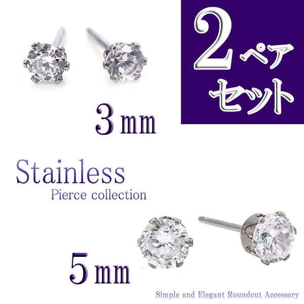 | コメント | ※2ペアで150円お得なセットです! 上質なジルコニアを使用したシンプルなピアスです。 石の直径が3mmと5mmの2ペアのセット商品になります。 小さいサイズのピアスなので仕事でもプライベートでも大活躍♪ 枠、ポスト、キャッチはすべて「ステンレス」を使用しているので金属アレルギーの方でも安心して着用頂けますよ。 (ステンレスは一般的に金属アレルギー対応と言われていますが、万一お肌に合わない場合はご使用をお止め下さい) |