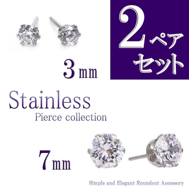 金属アレルギー ピアス 2ペアセット 「3ミリ&7ミリ」 ステンレス シンプル 小さめ 金属アレルギー対応 セカンドピアス ジルコニア シルバー 一粒 ステンレスピアス 小ぶり 重ね付け レディース メンズ プレゼント 誕生日 お祝い ギフト 贈り物 女性 彼女 妻 嫁 娘 友達 男性