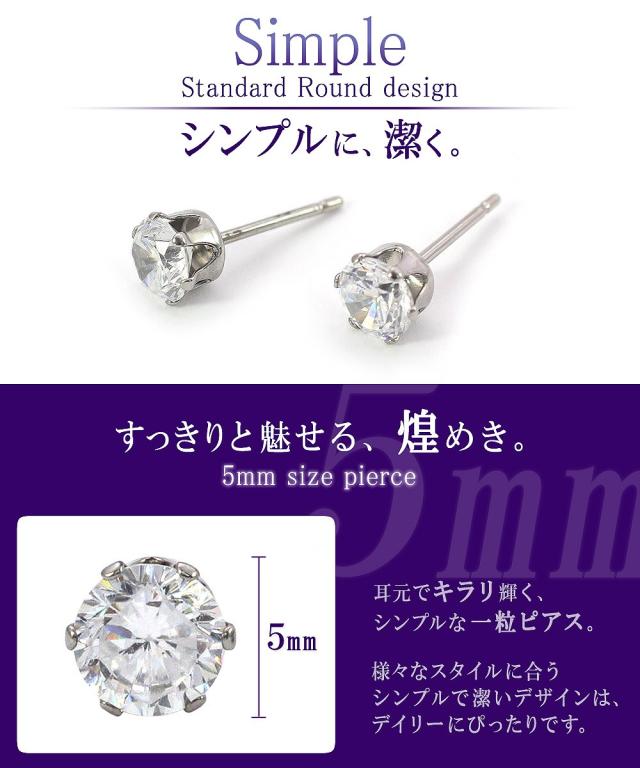金属アレルギー ピアス レディース シンプル 5mm ジルコニア 一粒 (両耳用) アクセサリー セカンドピアス シルバー 金属アレルギー対応 メール便送料無料 プチプラ プレゼント メンズ ホワイトデー お返し 記念日 誕生日 女性 彼女
