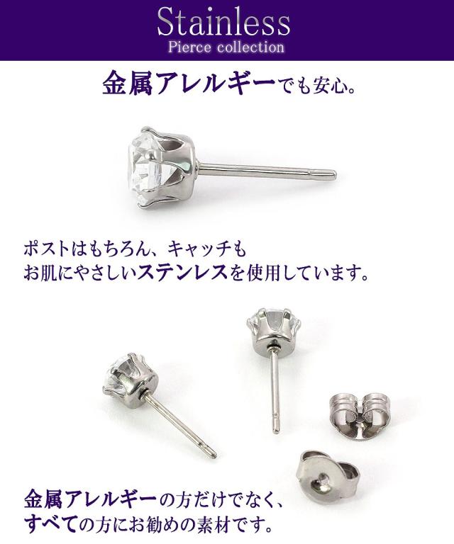 枠、ポスト、キャッチはすべて「ステンレス」を使用しているので金属アレルギーの方でも安心して着用頂けますよ。