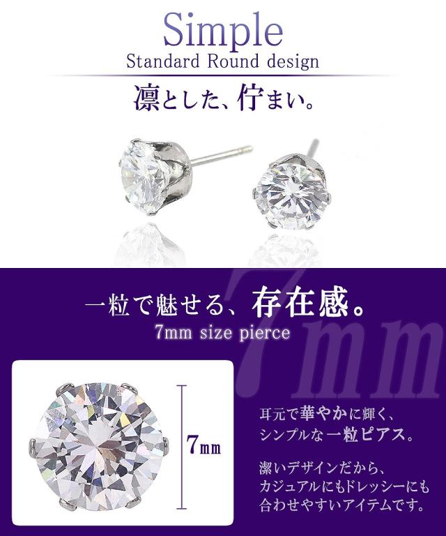 金属アレルギー 対応 ピアス ステンレス 一粒 (両耳用) シンプル レディース メンズ アクセサリー 7ミリ ジルコニア シルバー セカンドピアス 大きめ 大ぶり 男性 ホワイトデー お返し 記念日 誕生日 ギフト 贈り物 女性 彼女 妻 嫁 友達