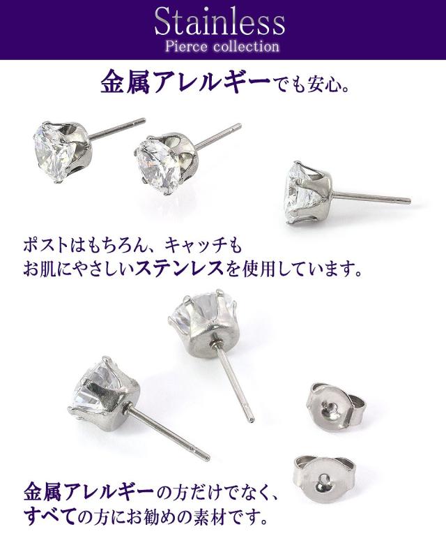 | コメント | 直径7mmの上質のジルコニアを使用したシンプルなピアスです。 小さいサイズのピアスなので仕事でもプライベートでも大活躍♪ 枠、ポスト、キャッチはすべて「ステンレス」を使用しているので金属アレルギーの方でも安心して着用頂けますよ。 (ステンレスは一般的に金属アレルギー対応と言われていますが、万一お肌に合わない場合はご使用をお止め下さい) |