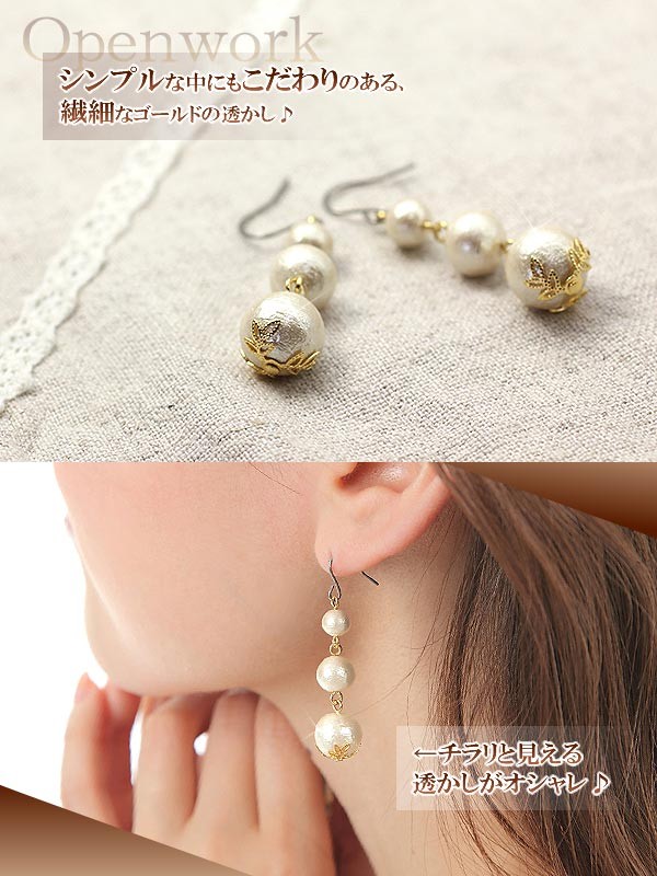 揺れるピアス コットンパール ピアス ゴールド アクセサリー パール フックピアス レディース ゆれる 軽い ロングピアス パーティー お呼ばれ 結婚式 二次会 おしゃれ プレゼント 母の日 ギフト 2026 誕生日 贈り物 女性 彼女 嫁 友達 大ぶり