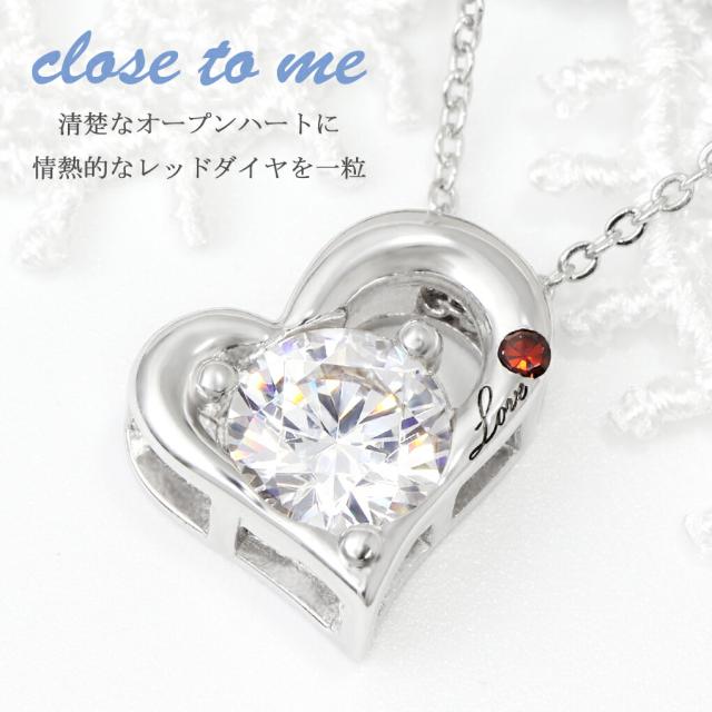 オープン ハート レッド ダイヤモンド ネックレス close to me シルバー 925 ペンダント ハートネックレス ダイヤモンドネックレス 大粒 石