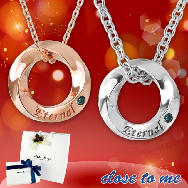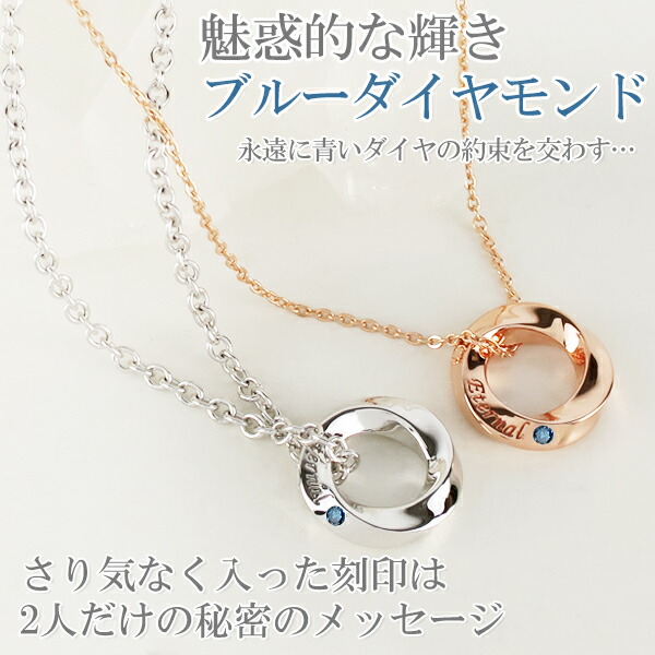 刻印 無料 ペアネックレス ブルー ダイヤモンド ツイスト リング close to me カップル シルバー925 ピンク ペア ネックレス ペンダント お揃い