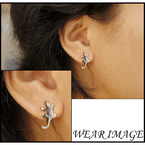 スタッズピアス スタッドピアス シンプル 動物 ユニセックス ワニ 鰐 アリゲーター レプタイル 個性的