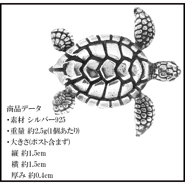 スタッズピアス スタッドピアス シンプル 動物 ユニセックス 海亀 カメ シルバーアクセサリー メンズ