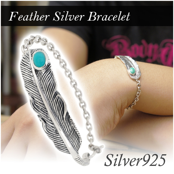 シルバーアクセサリー メンズ レディース ユニセックス チェーンブレスレット メンズブレスレット 羽根