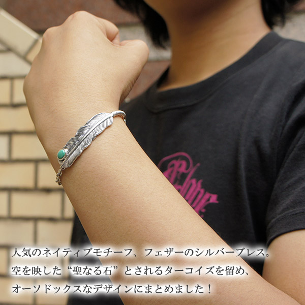 人気のネイティブモチーフ、フェザーのシルバーブレスレット。