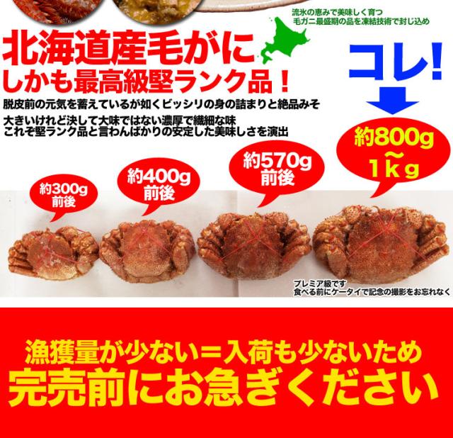 【超特大】毛ガニ 800g 前後 北海道産 姿 味噌 けがに 毛がに カニ 蟹 かに 脚 折脚たし脚入る場合があります