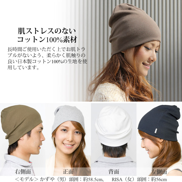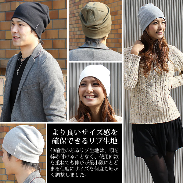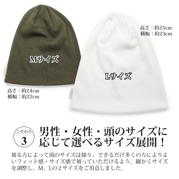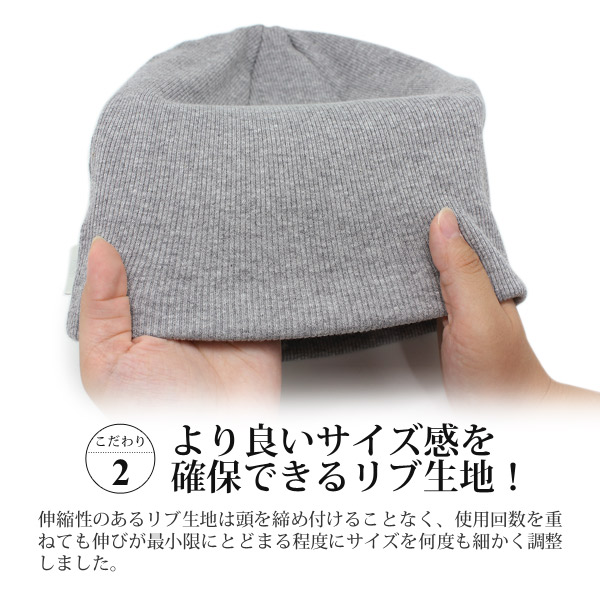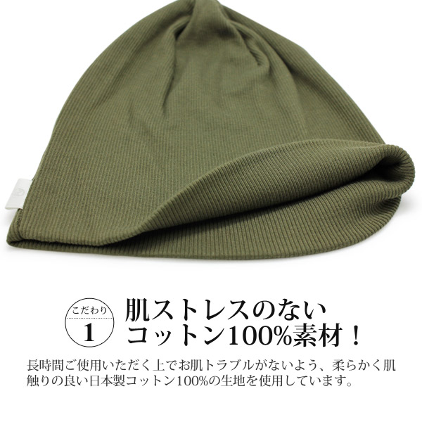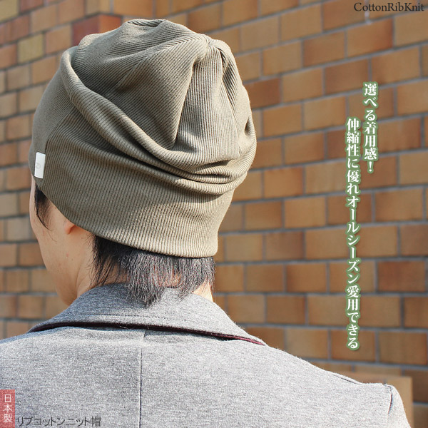 伸縮性に優れたリブ仕様のニットワッチが新たに登場しました。柔らかく肌触りの良い日本製コットン100%のリブ生地には、ゴムのような伸縮性がありますので締め付けることなく被れ、更にご自身の頭のサイズにぴったり合わせられるよう、サイズはMとLの2サイズをご用意致しました。生地の厚みも程良いので、暑さ寒さに関係なくオールシーズンご使用いただけます。外出時は勿論、室内帽子としても快適な当店だけのオリジナルニット帽です。