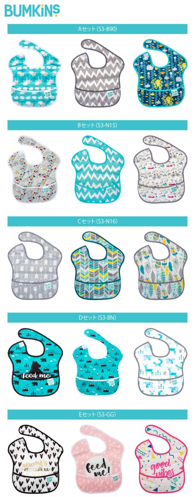 [あす着] バンキンス Bumkins スーパービブ3 お食事エプロン 3枚セット スーパービブ 6〜24ヶ月 防水 洗濯可 ベビー 赤ちゃん