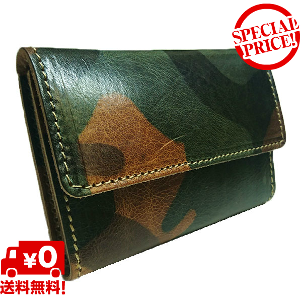≪日本製≫メンズ 名刺入れ イタリアンレザー(高級ヌメ革) 迷彩柄 rocm-1001 キャメル 化粧箱無し≪送料無料≫