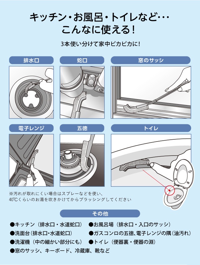 掃除に。お掃除ブラシ3本セット 使い分けて家中ピカピカ。